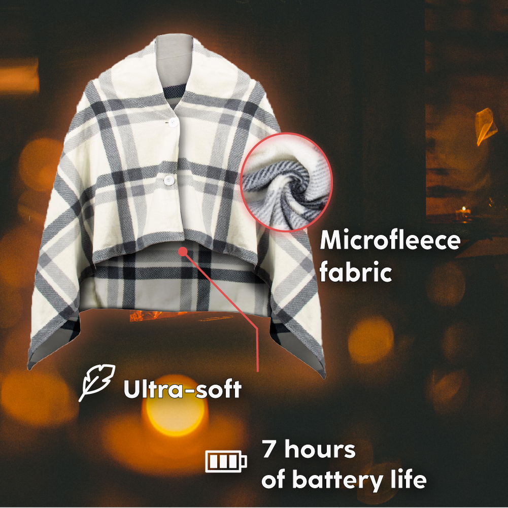 Our heated blanket is designed for chilly people who like to spend time chilling out at home, and for low-temperature homes (14 to 17° C)! Thanks to its two buttons, it can easily be transformed into a shawl to wrap you in all its warmth! Perfect for the cold season.